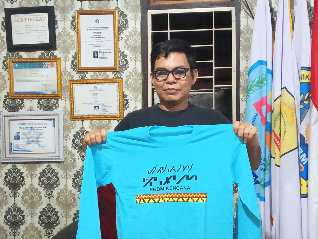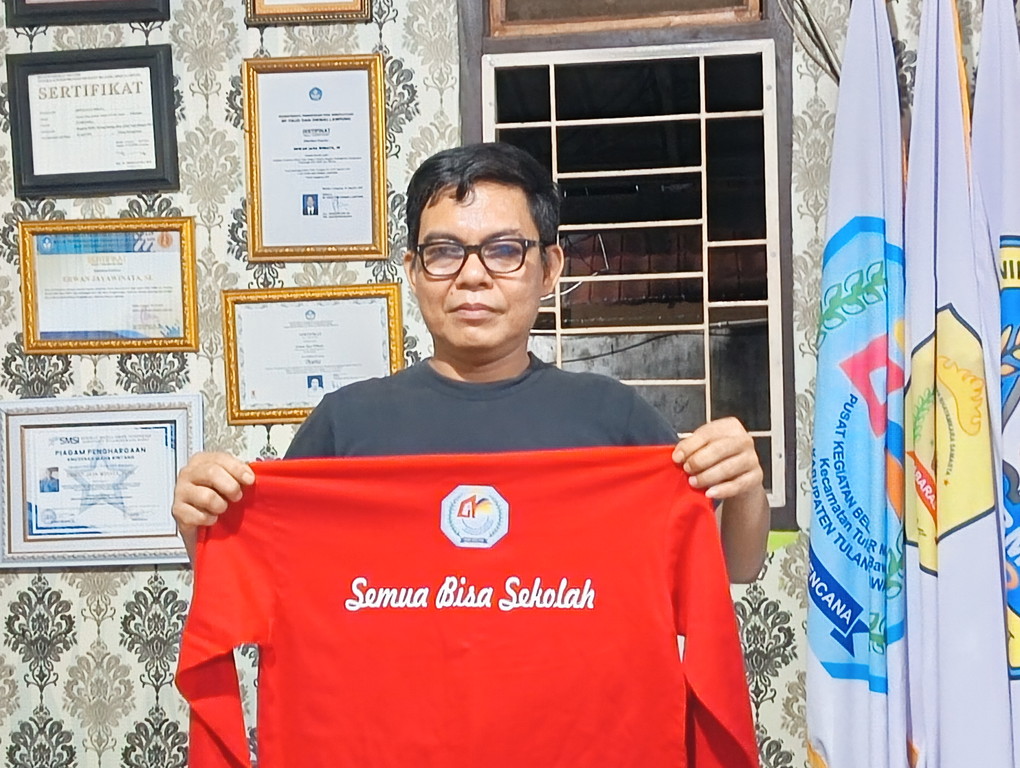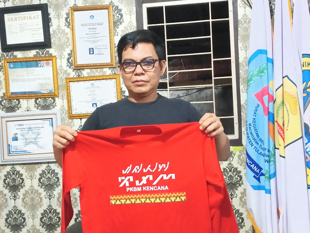 Foto: Erwan Jaya Winata,M.Pd menunjukkan seragam pendidik program pendidikan orang dewasa (Semua bisa Sekolah)