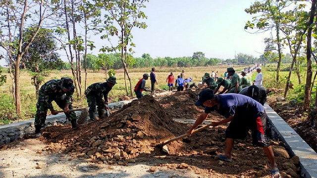 Sukoharjo (23/08/22) Satgas TNI Manunggal Membangun Desa (TMMD) Sengkuyung Tahap II Kodim 0726/ Sukoharjodi Desa Jengglengan, Kec. Nguter Kabupaten Sukoharjo, bersama dengan warga masyarakat bahu-membahu mengerjakan pengurugan bahu jalan di dukuh Ngandong, Selasa 23/08/2022.