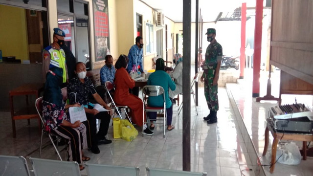 Wonogiri.- Anggota Koramil 03/Ngadirojo melaksanakan apel gabungan pengamanan, serta pengawalan dalam rangka pendistribusian logistik ke Desa dan Kelurahan se-Kecamatan Ngadirojo, Selasa 08/12/2020.
