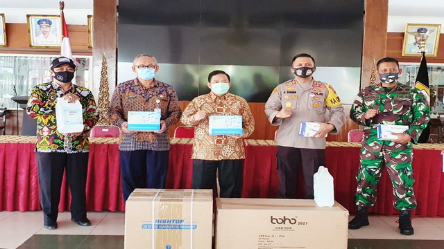 Tampabatas.com(SMSI), Wonogiri – Bertempat di Pendopo Kabupaten Wonogiri telah dilaksanakan penerimaan bantuan alat kesehatan sebanyak 3520, diantaranya 2.000 alat rapid test, 1.000 hazmat dan hand sanitizer, serta 520 alat viral transport medium (VTM), Selasa (25/8).