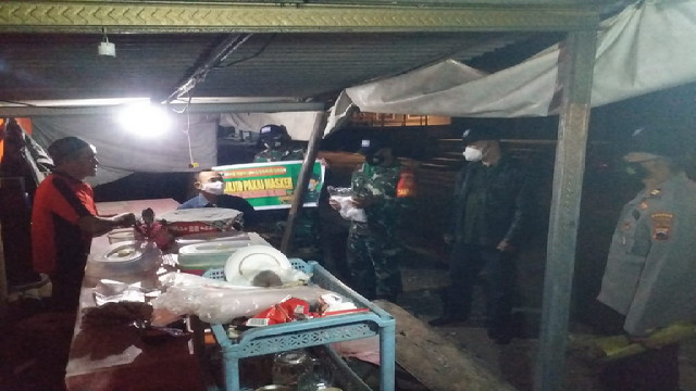 Wonogiri.– Petugas gabungan Koramil dan Polsek aktif melaksanakan kegiatan Patroli kewilayahan Dalam Rangka Upaya Pencegahan Penyebaran Virus Corona Covid-19 yang dipimpin langsung oleh Danramil Lettu Inf Eko Budi bersama Kapolsek Jatiroto, Rabu 14/07/2021 malam.