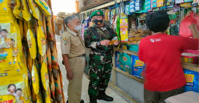 Surakarta. – Dalam upaya penerapan pemberlakuan pembatasan kegiatan masyarakat (PPKM) Babinsa Koramil 05/Pasarkliwon Kodim 0735/Surakarta Serda Eko melaksanakan patroli penerapan Protokol kesehatan (Prokes) di Pasar Tradisional dan Stasiun Solo Kota Kelurahan Sangkrah, Kecamatan Pasar Kliwon, Selasa 23/08/2022.