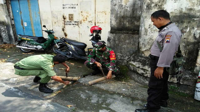 Kamis, (14/1), Tim yang terdiri dari Camat Nguntoronadi, anggota Koramil 04/Nguntoronadi yang dipimpin Serma Memed, Kapolsek Iptu Aman dan petugas kesehatan dari Puskesmas setempat menggelar operasi gakplin protkes di sekitar jalan Desa Beji.