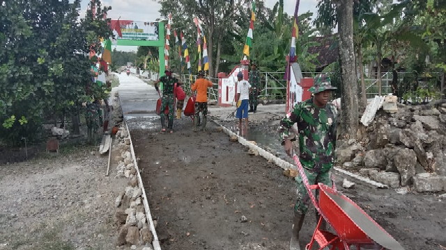 Ia menambahkan, hampir disemua sasaran, TNI dan warga memanfaatkan arco atau gerobak dorong untuk membawa material pembangunan guna mempercepat pekerjaan.