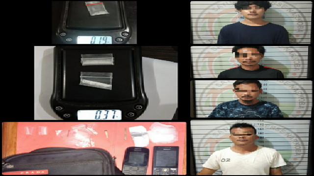 “Barang bukti berupa 2(dua) paket yang berisikan kristal putih bening diduga narkotika jenis sabu bruto ± 0,33gr, 24 (dua puluh empat ) plastik klip bening, 13 (tigabelas) lembar kertas papir rokok, 1 (satu) buah tas pinggang merk PRADA, 1 (satu) buah tas pinggang merk SAMON, 1 (Satu) unit handphone merk Nokia warna hitam, 1 (satu) unit handphone merk Nokia type 105 warna hitam,1 (satu) unit handphone tablet merek Advan, 5 (lima) buah korek api gas, 1 (satu) buah boong yang terbuat dri botol plastik, 4 (empat) buah pirek kaca, 1 (satu) buah jarum suntik dan 5 (lima) buah sedotan plastik.”bebernya.