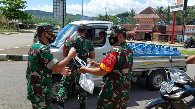 Seperti yang dilaksanakan oleh Serma Ferdian, Serma Danang, Serda Otto dan Serda Jefri disekitaran jalan Giriwoyo-Pacitan, mereka memberikan himbauan kepada para pengendara kendaraan bermotor untuk selalu menggunakan masker saat beraktifitas diluar rumah.
