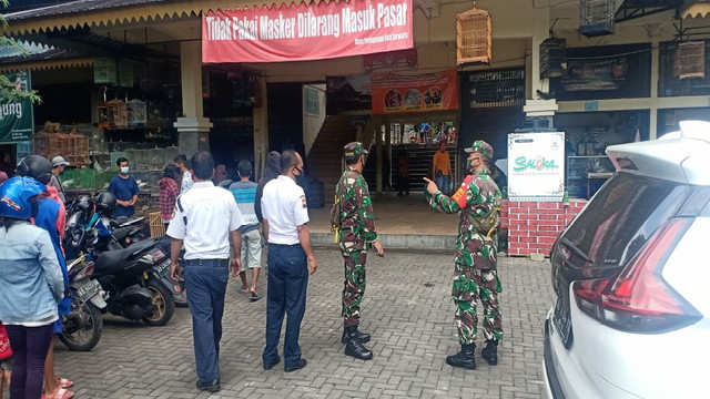 Surakarta.- Babinsa Kelurahan Danukusuman Koramil 03 Serengan Kodim 0735 Surakarta Koptu S.Tito melaksanakan kegiatan PPKMĀ dalam penanganan Covid-19 bertempat di Toko Kaos Grosir Sawo Kecik Jl. Kapten Pattimura Danukusuman Serengan Kota Surakarta, Kamis 18/02/2021.