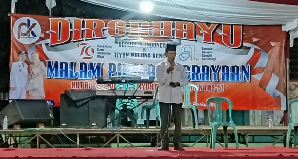 SMSI (Serikat Media Siber Indonesia) Kabupaten Tulangbawang Barat memberikan penghargaan Anugerah Maha Bintang berupa Plakat kepada Hendrawan Kepalo Tiyuh Pulung Kencana Kabupaten Tulangbawang Barat ketika perayaan hari kemerdekaan Republik Indonesia tingkat Tiyuh Pulung Kencana di halaman Balai Tiyuh Pulung Kencana Kecamatan Tulangbawang Tengah pada Sabtu malam (17/08/2024).