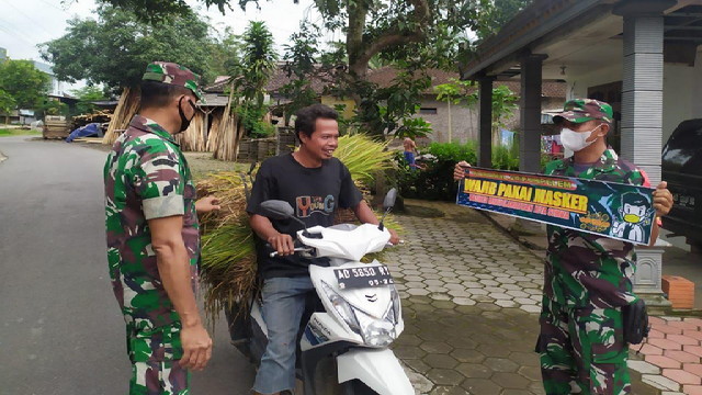 Peltu Bambang menambahkan dalam pembagian masker gratis dan menyampaikan himbauan personil Koramil, memberhentikan pengendara yang kedapatan tidak memakai masker, langsung diberikan masker secara geratis dan diberikan teguran lisan serta dihimbau untuk kedepannya lebih baik menggunakan masker.