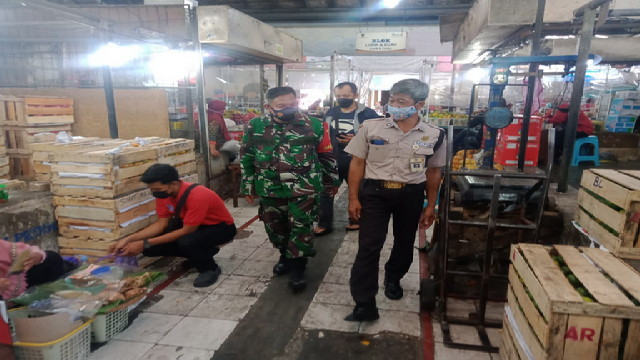 Babinsa dan satpam melakukan kegiatan PPKM kepada pedagang dan pengunjung pasar, ini merupakan upaya yang di lakukan oleh semua elemen guna mencegah serta menghambat Covid 19 dengan cara memberikan himbauan protokol kesehatan kepada pedagang dan pengunjung di pasar Gede Surakarta.