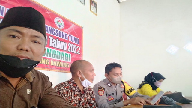 Disela-sela kegiatan Binter Danramil dan Kapolsek menyerahkan bantuan sembako TNI Polri yang berupa Beras kepada Ta’mir Masjid Baitussalam Ustad Wakimin.