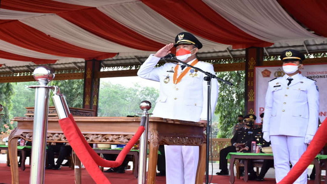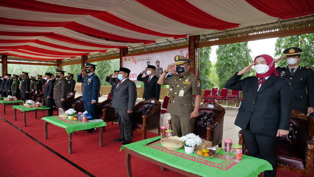 Upacara Peringatan HUT Ke-76 Republik Indonesia Tingkat Kabupaten Tulang Bawang Barat diselenggarakan secara terbatas dan dengan mematuhi Protokol Kesehatan yang ketat.