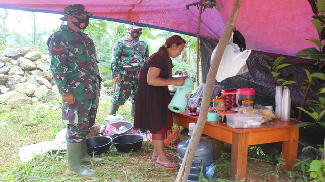 Walaupun kadang harus berpindah tempat menyesuaikan progres yang dirampungkan, namun dirinya merasa senang karena selain bisa mendatangkan rezeki tambahan, juga bisa membantu kebutuhan dari anggota Satgas yang ingin membeli kopi maupun rokok saat melaksanakan istirahat.