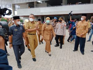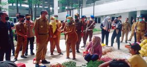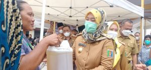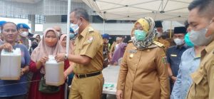 Foto: Umar Ahmad Bupati Tubaba dan Chusnunia Chalim Wagub Lampung buka pasar murah di pasar modern Pulung kencana.