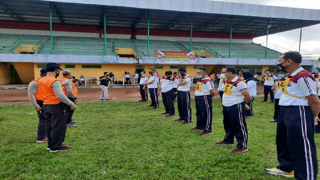 “Dalam melaksanakan ujian kesamaptaan anggota terlebih dahulu diperiksa kesehatan seperti, cek suhu tubuh, pemeriksaan tekanan darah. Setelah dinyatakan sehat, anggota diperbolehkan melaksanakan tes meliputi lari selama 12 menit, full up, push-up, sit up dan lari angka delapan serta beladiri Polri,” Kata Kompol Suharto.