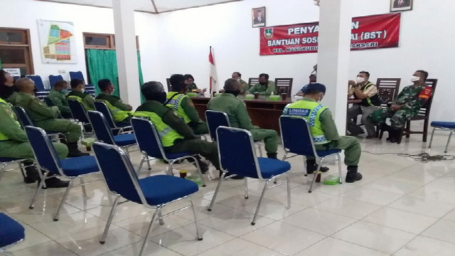 Suasana kebersamaan tidak hanya terlihat saat melaksanakan kegiatan fisik saja, tapi juga di saat istirahat, Warga masyarakat dan TNI terlihat akrab bersama warga.