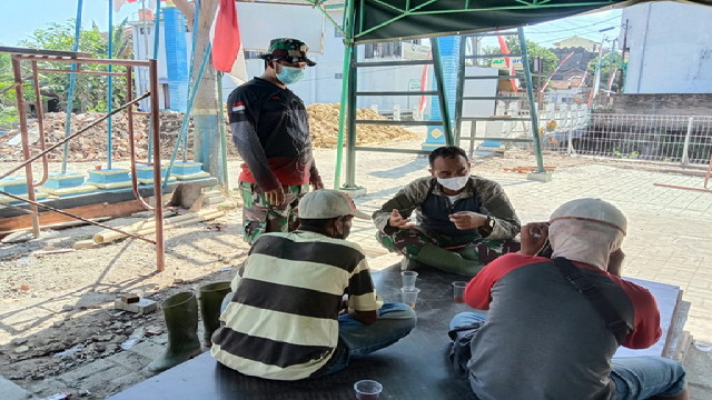 Seperti halnya yang dilakukan Pelda M Rafi, salah satu anggota Satgas TMMD yang selalu memanfaatkan waktunya untuk melaksanakan komunikasi sosial (komsos) dengan warga di lokasi pembuatan Gazebo, Senin 05/07/2021.