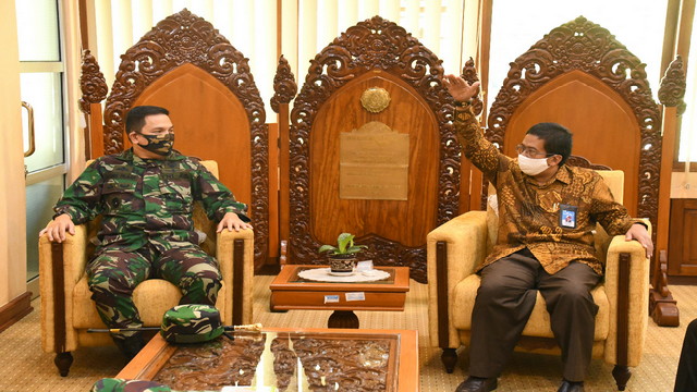 Danrem beserta rombongan disambut oleh Rektor UNS Prof. Dr. Jamal Wiwoho SH, M. Hum dan Wakil Rektor 3 Prof Dr. Kuncoro Diharjo di Gedung Rektorat Kampus UNS Jln. Ir. Sutami no 36A, Kentingan, Kecamatan Jebres Surakarta.