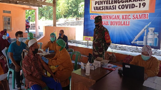 Babinsa Tawengan Koramil 10/Sambi Serka Heri Prasetyo melaksanakan pendampingan vaksin dimulai dari mensosialisasikan tentang vaksinasi Covid-19, pendataan warga yang belum divaksin sampai dengan melaksanakan pendampingan warga ke tempat pelaksanaan vaksinasi Covid-19.