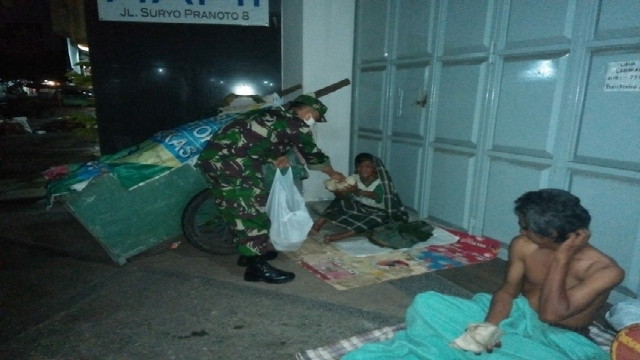 Tamoabaras.com(SMSI), Surakarta.- Koramil 04/Jebres Kodim 0735/Surakarta Serma Teguh S dan Serda Budiono membagikan sebanyak 175 nasi bungkus untuk makan sahur untuk masyarakat di wikayah Jebres ( Selasa dini hari 19/05/2020.