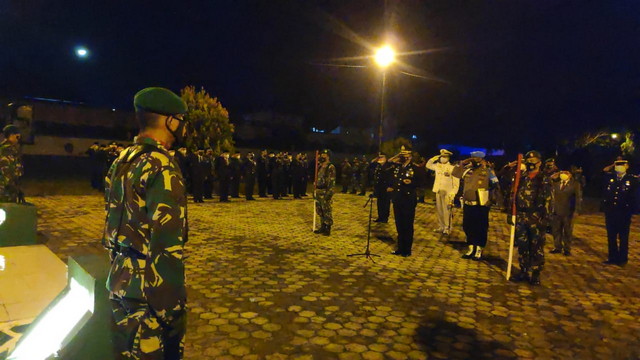 Pasukan upacara renungan suci yang dilaksanakan pada dini hari Selasa 17/8/2021 pukul 00.00 wib tersebut, terdiri dari unsur TNI, BRIMOB/ POLRI, Sat Pol PP, Korpri dan Pramuka.
