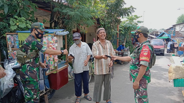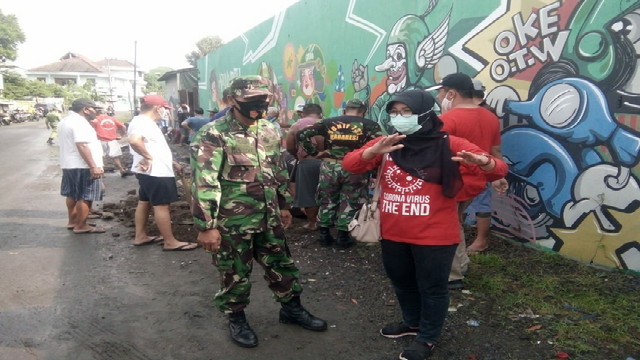 Dalam suasana yang akrab, anggota Koramil 04/Jebres juga menyisipkan obrolan kepada warga yang hadir dalam kegiatan gotong royong tersebut, bahwa dimasa Pandemi Covid – 19.