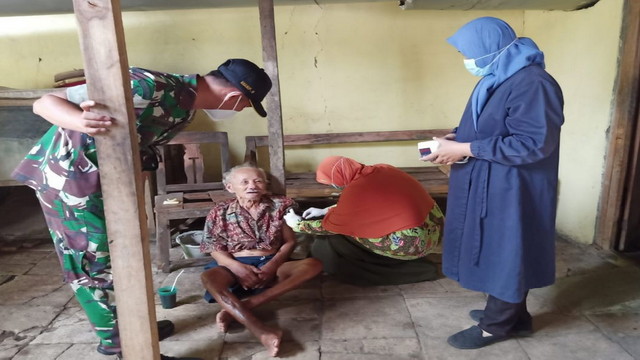 Danramil 03/Serengan kodim 0735/Surakarta Kapten.Inf.Tri Sakti K dan Babinsa Kel. Jayengan Sertu Priyanto menyerahkan Al-quran dan Sarung untuk masjid Nur di Rt 03 Rw 09 Kampung Notosuman Kelurahan Jayengan Kecamatan Serengan. Rabu 06/05/2020.