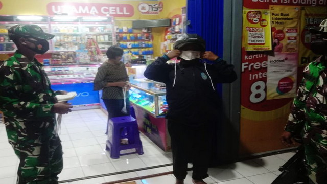 Wonogiri. – Guna mengantisipasi penyebaran Covid-19 dan sekaligus upaya pendisiplinan protokol kesehatan kepada masyarakat, anggota Koramil 16/Jatiroto melaksanakan patroli Prokes (Protokol Kesehatan) dan memberikan masker secara cuma cuma kepada warga.