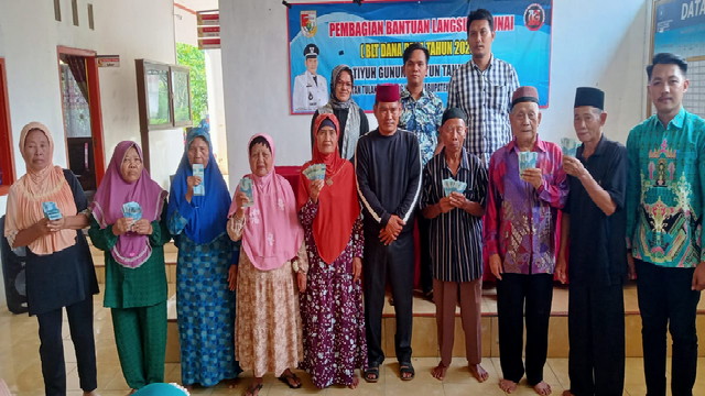 Sejumlah masyarakat di Tiyuh (Desa) Gunung Katun Tanjungan, Kecamatan Tulangbawang Udik, Kabupaten Tulangbawang Barat menerima Bantuan Langsung Tunai (BLT) yang bersumber dari Dana Desa (DD). Di Balai Tiyuh Gunungkatun Tanjungan,
