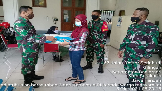 Tampabatas.com(SMSI), Surakarta.- Bertempat di Kampung Notodiningratan RT 05 RW IV Kelurahan Kemlayan Babinsa Koramil 03 Serengan Kodim 0735 Surakarta Bersama Lurah dan Bhabinkamtibmas memberikan Bantuan Sembako kepada warga yang dikarantina dampak Covid – 19. Selasa 13/10/2020.
