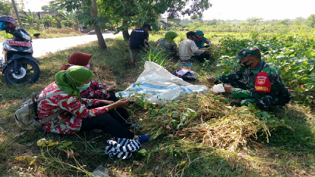 Tampabatas.com(SMSI), Boyolali.- Anggota Koramil 12 Simo Kodim 0724/Boyolali Serda M Irfan dan Serda M Zaenuri mendampingi kegiatan pengubinan tanaman kedelai siap panen oleh Dinas Pertanian Kabupaten Boyolali di Dukuh Tegalrejo Rt 03 Rw 08 Desa Pelem Kecamatan Simo Kabupaten Boyolali. Sabtu 26/09/2020.
