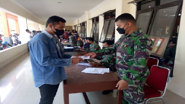 Sukoharjo (26/10/21) Kodim 0726/Sukoharjo kembali melaksanakan serbuan vaksinasi covid 19 untuk jenis Astra Zeneca dosis 2 di 3 lokasi, Senin (25/10/2021). Ketiga lokasi tersebut diantaranya di Gedung PGRI Sukoharjo, PT. Kini Ind Kec. Gatak dan di Gd. Serba Guna Cangkol Kec. Mojolaban, Sukoharjo.