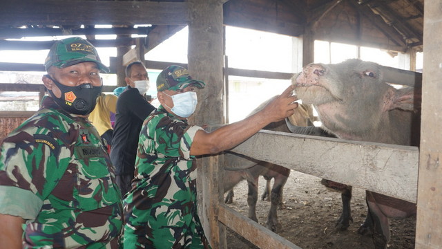 “Saat ini pemerintah sedang berusaha untuk memutus penyebaran Penyakit Mulut dan Kuku, selain himbauan dan penyemprotan juga dilaksanakan vaksinasi, seperti yang sudah dilakukan dibeberapa daerah, Adanya Babinsa yang turun langsung kelapangan akan mempercepat penanganan Penyakit Mulut dan Kuku,” pungkas Dandim.