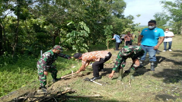 Sragen.- Danramil 16/Miri Kodim 0725/Sragen Kapten Inf Saeroji beserta 8 orang anggota melaksanakan karya bakti penghijauan berupa penanaman bibit pohon trembesi 52 batang dan sengon 30 batang, yang diikuti oleh -+ 35 orang, dalam rangka program penghijauan th 2021 yang dilaksanakan secara serentak di seluruh wilayah Kab Sragen bertempat di lokasi lahan milik PT Berlian Makmur di Ds Bagor Kec Miri Kab Sragen, Jum’at 19/11/2021.