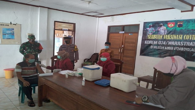 Boyolali.- Tiga pilar Kecamatan Karanggede kompak kawal kegiatan vaksinasi bagi warga Desa Mojosari Kecamatan Karanggede Kabupaten Boyolali.