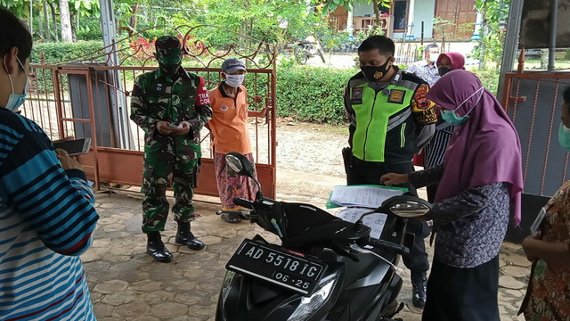 Guna mendukung hal itu, anggota Koramil 03/Ngadirojo Sertu Parmin dan Serda Kuwato membantu tenaga Kesehatan Puskesmas Ngadirojo melakukan contact tracking, bertempat di desa Kerjo Lor, Kecamatan Ngadirojo, Selasa(6/4).