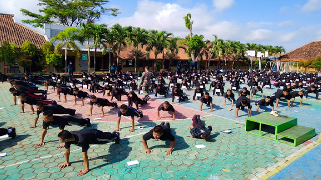 Wonogiri. – Segenap anggota Koramil 21/Bulukerto berkesempatan memberikan materi penguatan pendidikan karakter dan kedisiplinan kepada siswa baru SMKN 1 Bulukerto sebanyak 360 siswa, yang bertempat di lingkungan sekolah, Selasa 19/07/2022.