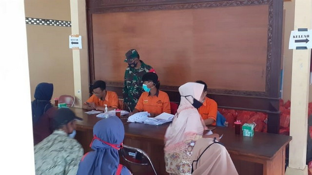 Tampabatas.com(SMSI), Wongiri.- Anggota Koramil 23/Karangtengah Serda Eko Agus Abriyanto dan Koptu Suyanto melaksanakan pendampingan terhadap warga masyarakat Kecamatan Karangtengah saat mengambil Bantuan Sosial Pangan(BSP) yang terpusat di Pendopo Kecamatan Karangtengah. Jum’at 23/10/2020.