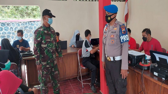 Wonogiri. – Dalam rangka percepatan kekebalan kelompok penduduk wilayah Kecamatan Karangtengah, anggota Koramil 23/Karangtengah bersama dengan anggota Polsek Karangtengah melaksanakan pendampingan dan monitoring kegiatan vaksinasi dosis ke Dua, Minggu 03/10/2021.