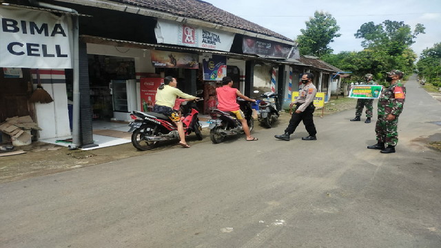 Wonogiri.- Koramil 22/Slogohimo bersama Polsek Slogohimo terus melakukan berbagai upaya untuk mengajak masyarakat agar disiplin mematuhi protokol kesehatan guna mencegah penyebaran Covid-19 di wilayah Kecamatan Slogohimo.