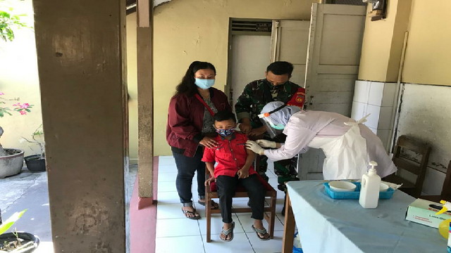Boyolali.- Guna memutus mata rantai penyebaran virus Covid-19, Tiga Orang Anggota Koramil 01/Boyolali Kota Kodim 0724 Boyolali yang dipimpin Babinsa Siswodipuran Sertu Lastari bersama dengan Polsek Boyolali Kota melaksanakan operasi yustisi penegakan disiplin mematuhi protokol kesehatan di Kompleks Taman Dalam Kabupaten Lama Kampung Singopranon Kelurahan Siswodipuran Kec.Boyolali Kabupaten Boyolali. Minggu 12/12/2021.