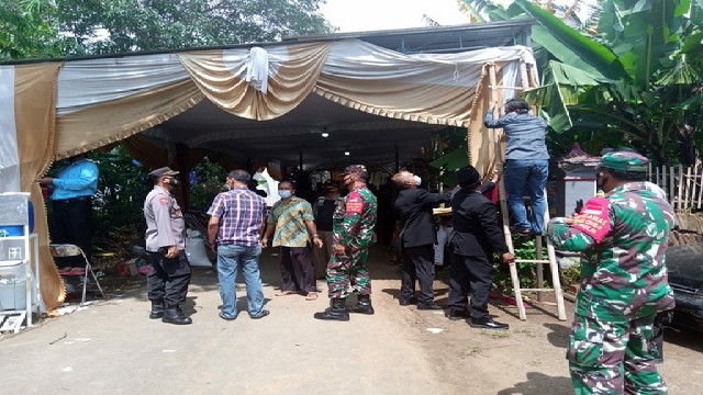 Boyolali.- Tim Satgas penanganan Covid-19 baik dari anggota Koramil 03/Mojosongo Kodim 0724/Boyolali, Polsek Mojosongo, Satpol PP dan perangkat Desa Metuk, Kecamatan Mojosongo, Kabupaten Boyolali dengan terpaksa membubarkan acara resepsi hajatan pernikahan keluarga Paryadi (43) Dukuh Nyamplung Rt.02/Rw.04 Desa Metuk Kecamatan Mojosongo, Kabupaten Boyolali. Minggu 24/01/2021.