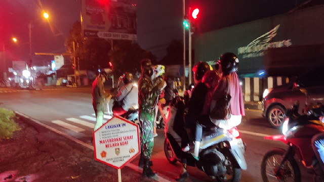 Wonogiri – Guna meningkatkan kesadaran masyarakat untuk memakai masker, anggota Koramil 14/Jatisrono Kodim 0728/Wonogiri melaksanakan kegiatan razia penggunaan masker dan himbauan tentang pencegahan dan penanganan Covid 19 yang dilaksanakan di Tenpat umum, Sabtu 22/05/2021 malam.