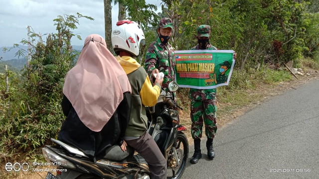 Wonogiri – Dalam upaya meningkatkan kedisiplinan warga untuk selalu menerapkan protokol kesehatan, guna bersama-sama mencegah dan memutus penyebaran Covid-19, Babinsa Koramil 23/Karangtengah rutin melaksanakan operasi pendisiplinan protkes.