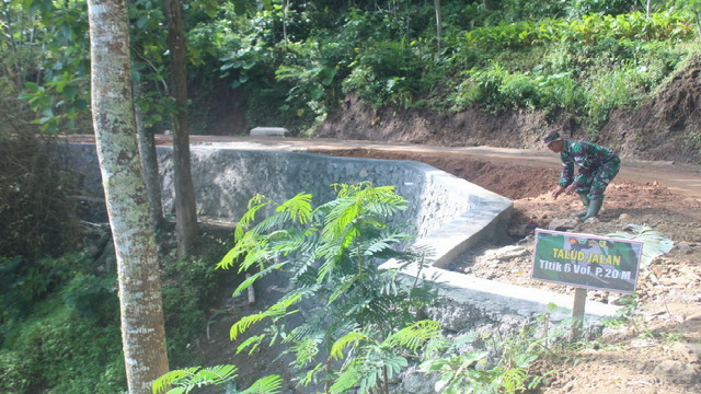 “Sudah rampung 4 titik talud dari 7 titik yang ada, kita kejar terus dalam pengetjaannya agar TMMD tepat waktu.”ujar Pasiter Kapten Inf Moch. Sambudi.
