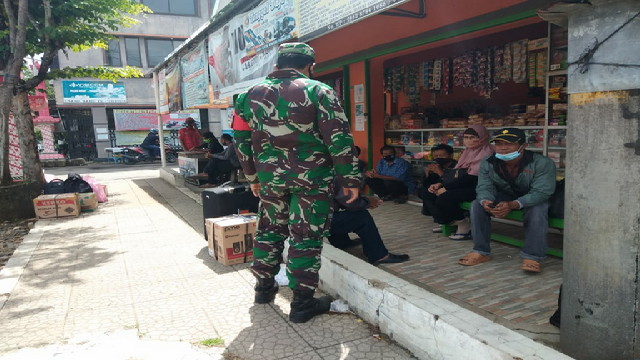 Wonogiri.- Guna mendukung upaya pemerintah dalam percepatan penanggulangan penyebaran Covid-19, anggota Koramil 07/Tirtomoyo Serka Septiyo darsono bersama Serda Dwi Waskito bergerak menindaklanjuti Intruksi Presiden Republik Indonesia (Inpres) No.6 Tahun 2020 tentang peningkatan disiplin dan penegakan hukum protokol kesehatan.