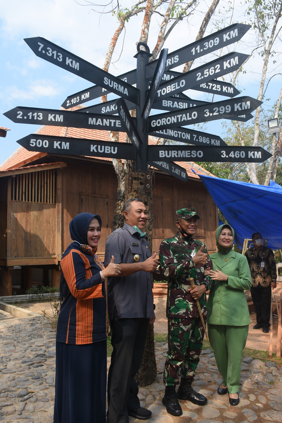 {Ket-Foto : Dari kiri, Ny.Kornelia Umar, Bupati Umar Ahmad, Mayjend.TNI.Agus Suhardi, Ketua persit KCK Daerah II Sriwijaya. Sedang berada di Titik nol Tubaba.}
