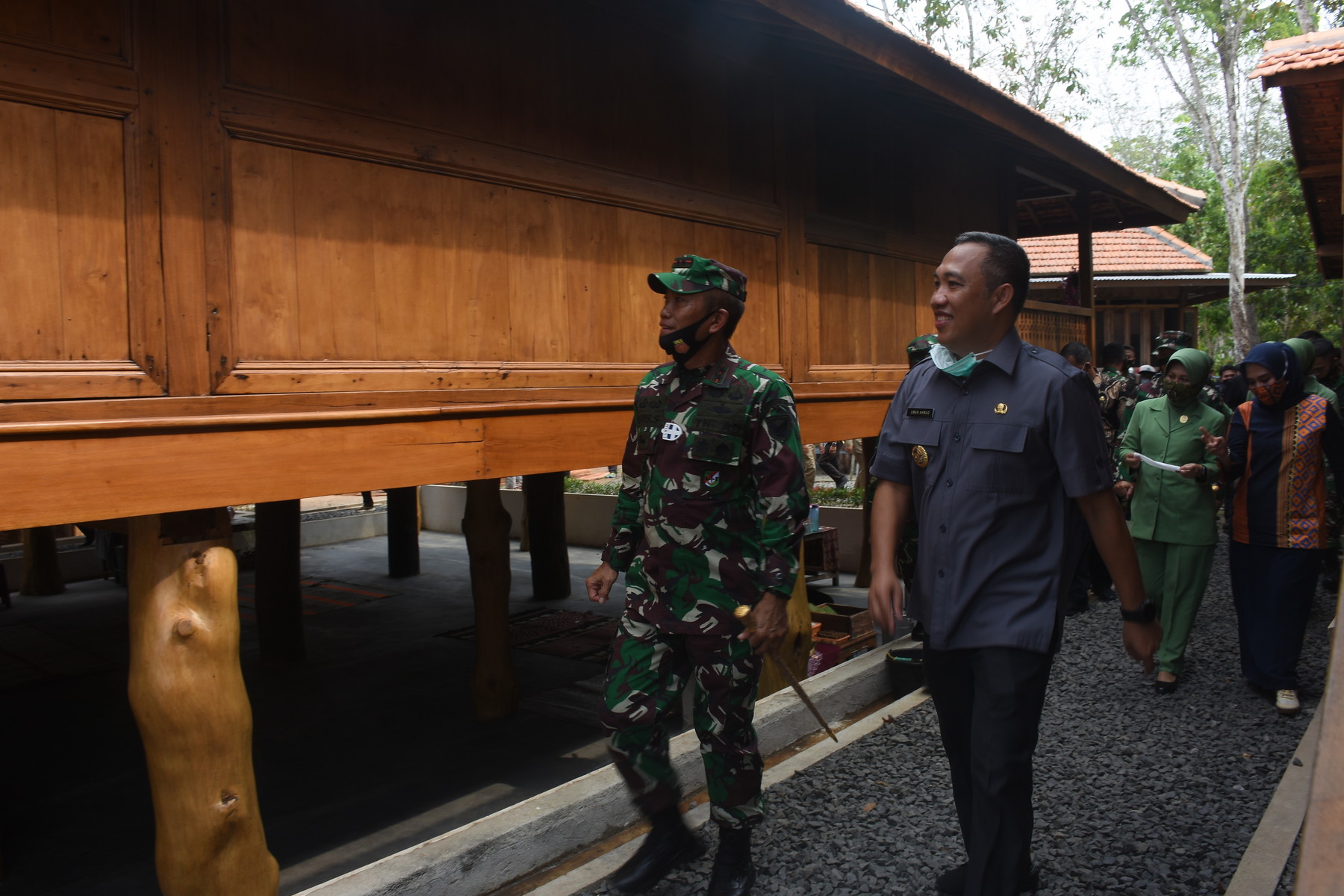 {Ket-Foto : Pangdam II Sriwijaya melihat lebih dekat bangunan rumah gaya klasik di Kota Budaya Uluan Nughik.}
