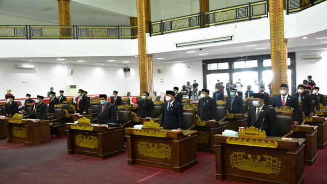 Sekdakab Tulangbawang Barat Novriwansyah menghadiri jalannya Rapat Paripurna Pengucapan Sumpah / Janji Peresmian Pengangkatan Pengganti Antar Waktu Anggota DPRD Tulangbawang Barat Sisa Masa Jabatan 2019-2024 atas nama Novi Linda, di Ruang Paripurna DPRD setempat. Rabu 07/07/2021.