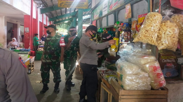 Pagi ini Babinsa Kelurahan Sudiroprajan Koramil 04/Jebres Kodim Surakarta Serda Agus S bersama dengan Satpam Pasar melaksanakan Kegiatan, himbauan Prokes dan PPKM, edukasi dan peneguran terhadap masyarakat untuk taat menerapkan Protokol Kesehatan yang mengambil lokasi di Pasar tradisional di Pasar Hardjonagoro pasar Gede Kelurahan Sudiroorajan Kecamatan Jebres, Selasa 01/03/2022 Pukul.10.00 wib sampai dengan selesai.